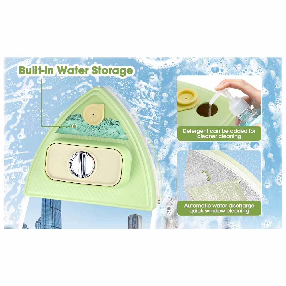وجود مخزن مایع داخلی و قابلیت پاشش کنترلشده باعث میشود نیازی به اسپری جداگانه نباشد. تنها کافی است مایع شوینده را در مخزن بریزید، و هنگام حرکت دستگاه، مایع به طور یکنواخت روی شیشه پاشیده میشود.